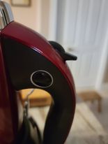 There are 2 buttons on my beautiful new mixer, as you can see – one on the top of the handle and one on the side.