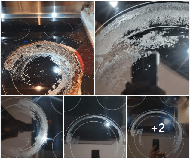 After a week and 20 hours going back to stove with different cleansers and blades and scrapers, it is now ALMOST back to normal. At least it doesn’t make me angry every time I walk by it!