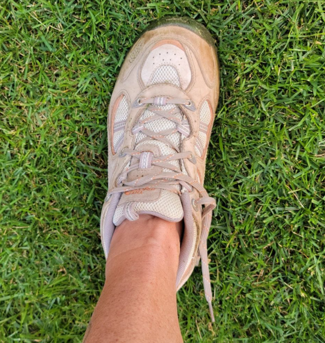 But while trying to do “the right thing”, she leaned forward on her right foot, putting all of her weight on her gimpy ankle, since I was pulling her left shoelaces … while being ignored!! 😅😅