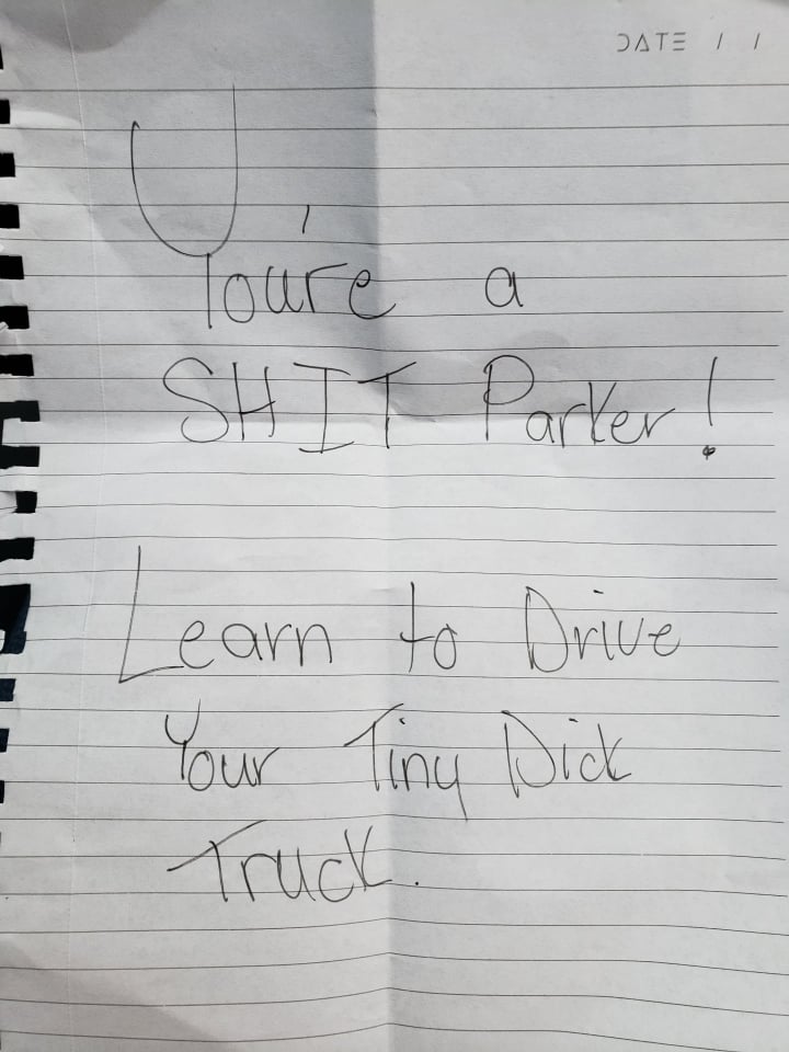 Lesson learned? If I ever leave a note on a man’s car, do not reference the size of his penis!